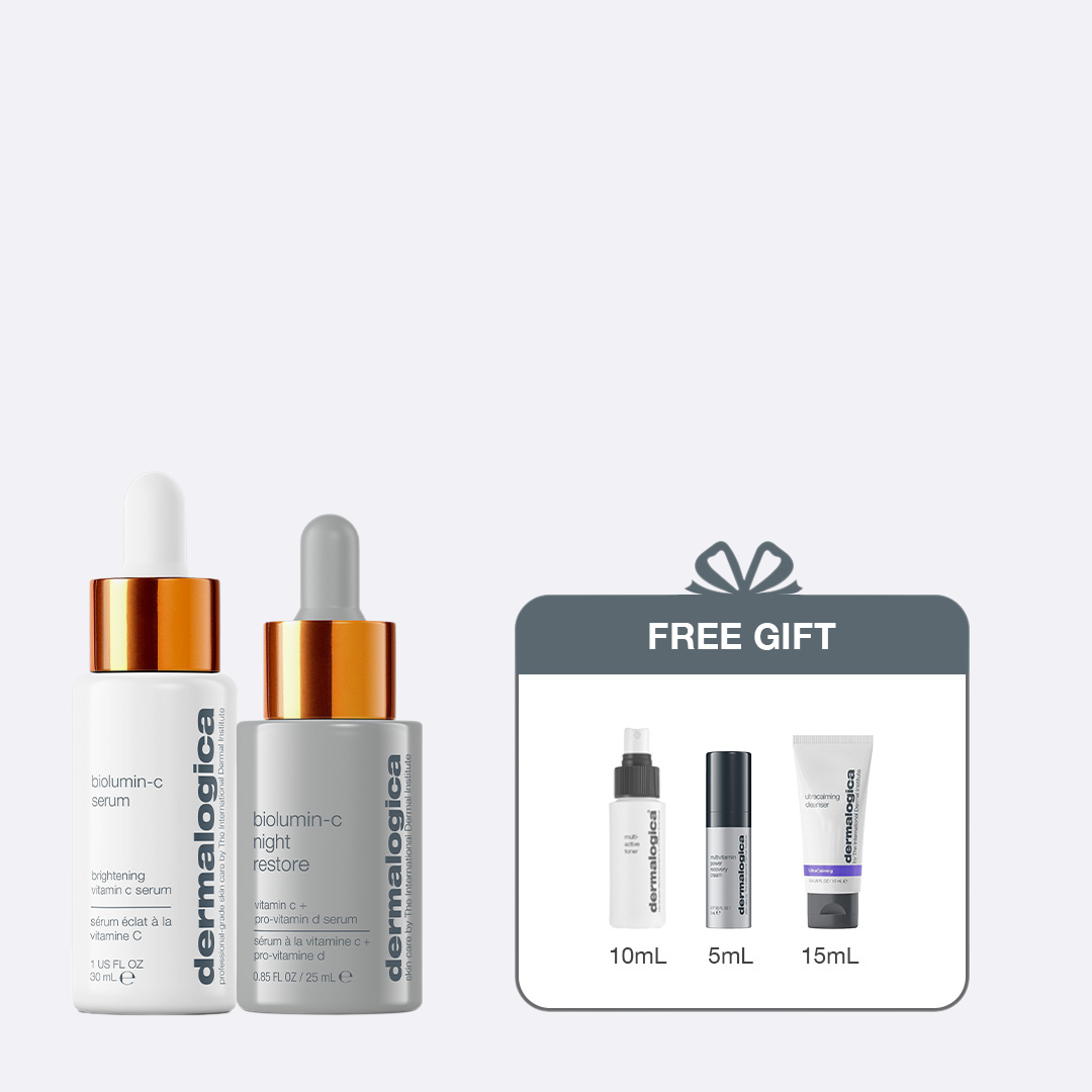 Incorporating Vitamin C serum into both your morning and nighttime skin care routines can help transform your skin. With Dermalogica’s Biolumin-C Serum for AM use and the Biolumin-C Night Restore Serum for PM use, you can enjoy the full spectrum of Vitamin C benefits. Protect, brighten, and restore your skin by making Vitamin C a daily (and nightly) essential, ensuring your complexion stays radiant and resilient.