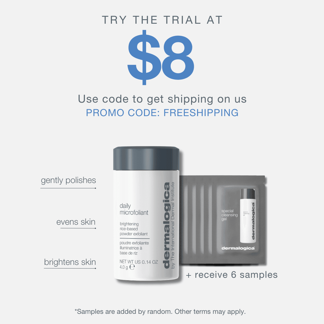 Dispense about a half-teaspoon of Daily Microfoliant® into very wet hands and create a creamy paste by rubbing hands together. Apply to face in circular motions, avoiding the eye area. Massage gently for one minute, then rinse thoroughly. Follow with Multi-Active Toner or UltraCalming Mist and prescribed Dermalogica Moisturizer.