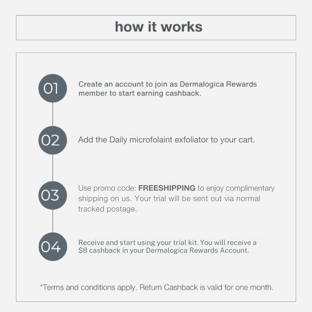 join us as Dermalogica Rewards Member and earn $0.2 cashback